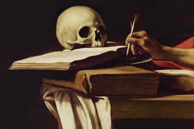 Jerome writing was painted, according to bellori, for pope paul v's nephew, cardinal scipione borghese, who only arrived in rome in the summer of 1605, but rapidly became a keen collector of caravaggio's work. Caravaggio's use of dramatic lighting or chiaroscuro, and realistic approach to religious subject matter had a strong influence on his contemporaries, such as ribera, rembrandt, and georges de la tour. The saint is looking at a human skull, a reminder of a world full of vanity and looming death. Typically, depictions of the vision of st.. The piece depicts a thin, ageing st.